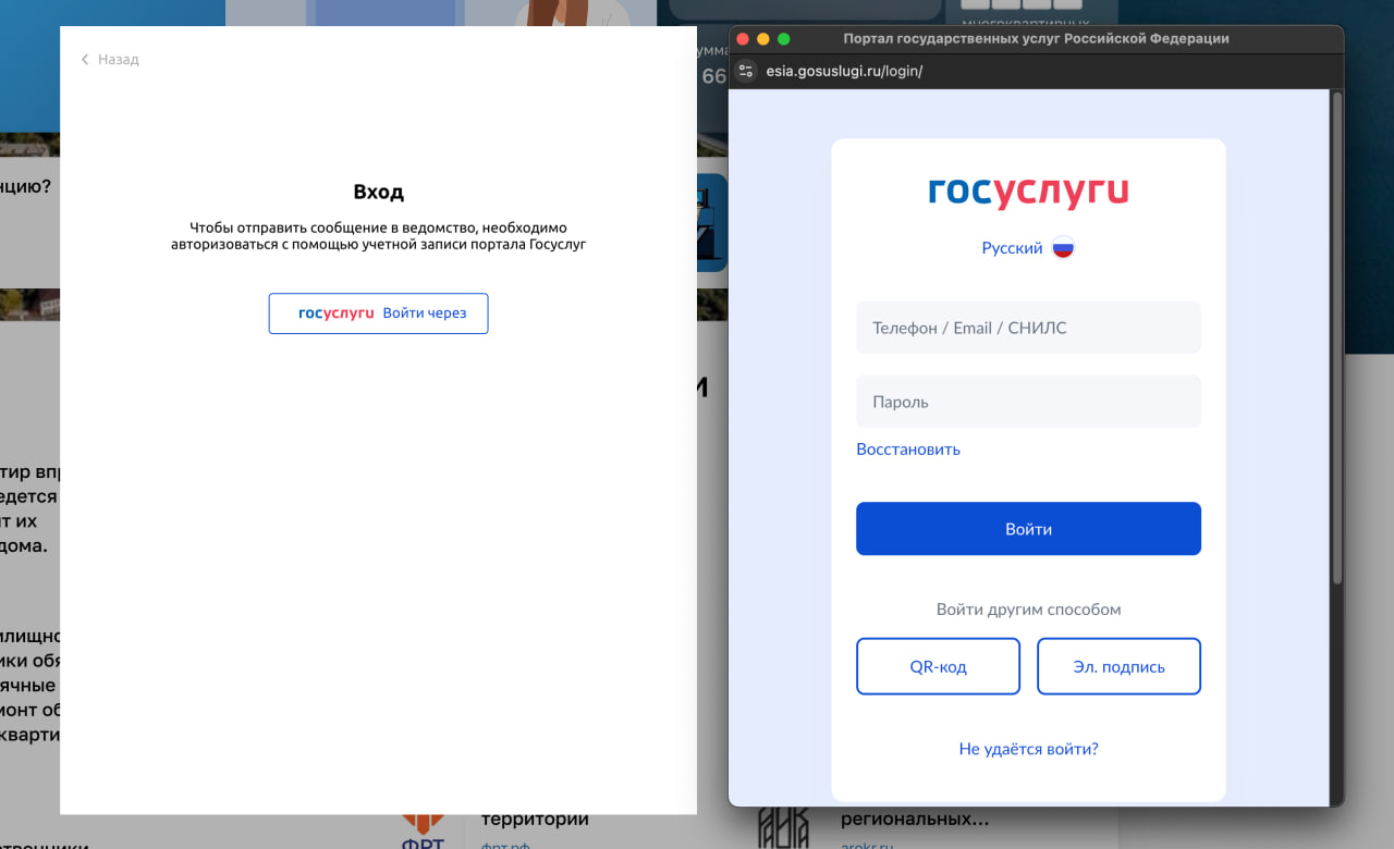 А также, настроена интеграция с госуслугами, чтобы можно было авторизоваться прямона сайте и отправить свое обращение